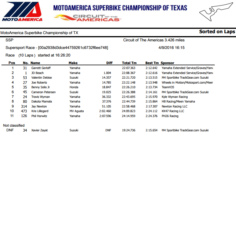 “The track was a little greasy today, not sure if that was due to the grand prix guys or not but it was really hard to keep the bike in line,” said Gerloff. “Still, I was able to do smooth and consistent laps and get the win at my home track, so I couldn’t be happier.”