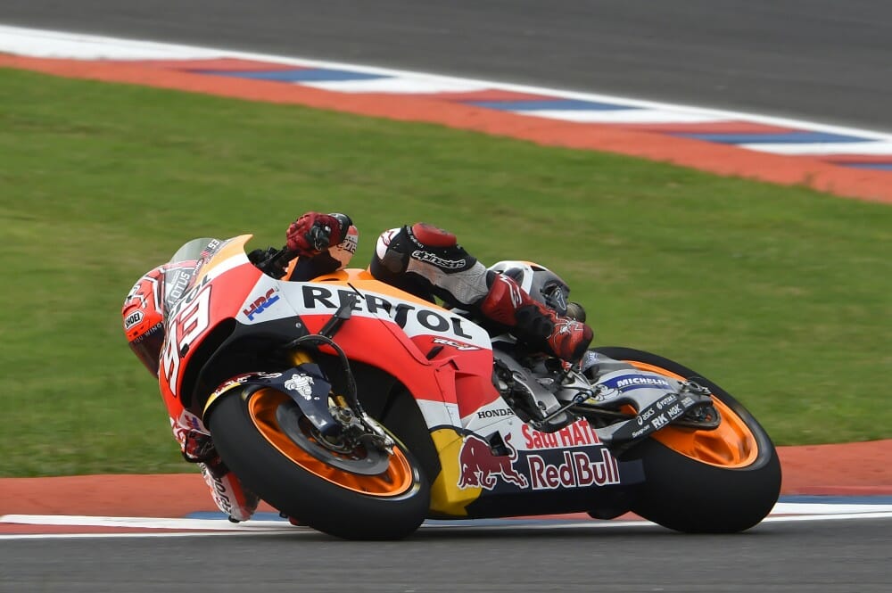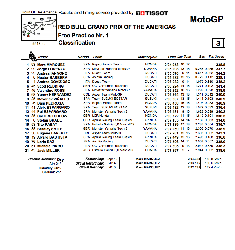 The Red Bull Grand Prix of the Americas in Austin, TX, got underway this morning with Marc Marquez topping the time sheets from Jorge Lorenzo and Andrea Iannone, with Hector Barbera and Andrea Dovizioso making it three Ducati’s out the top five.