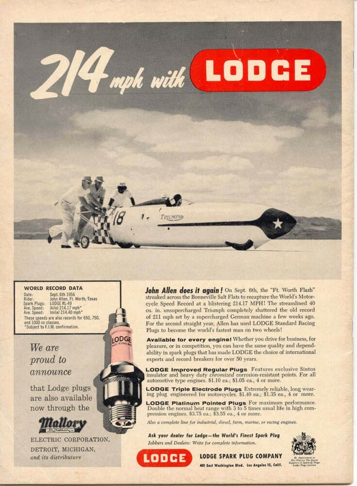 Allen’s record set off a massive advertising campaign by Triumph and eventually leading the launch of the Triumph Bonneville, named in honor of the land speed record, in 1959.