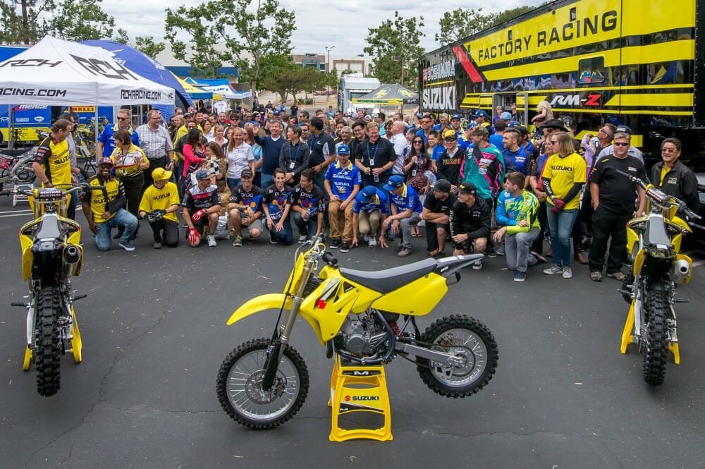 Yoshimura Suzuki’s James Stewart was one of the many Suzuki-backed motocross stars that attended today’s Suzuki T.E.A.M. Day at the company’s corporate offices in Brea, California. The event was hosted mainly for the employees of SMAI (Suzuki Motor of America, Inc). who were given the opportunity to meet the racers, as well as many of the race team personnel. They also got to get a close-up look at the team rigs and race shops. One of the racers who was unable to attend was Yoshimura Suzuki’s Blake Baggett who suffered a broken collarbone at Hangtown. He had surgery on the collarbone yesterday and will be out of action for a few weeks.