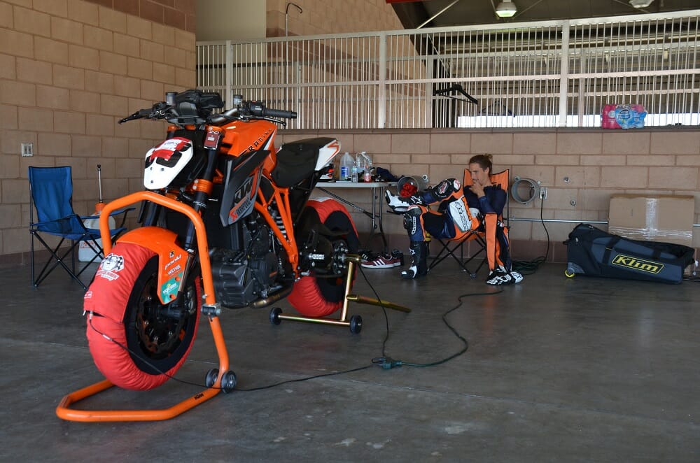 Pirelli has come on board as a major sponsor and supplied a fleet of SC1 slick tires for us to shred through, and they have proved invaluable so far. I’ve ridden on Pirellis for years in Australia and love the progressive feel they have, especially on acceleration. The SC1 is super soft and the rear is pretty much cactus after four hard sessions at Fontana, although the front seems to last a bit longer.