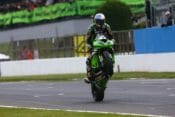 Tom Sykes (Kawasaki Racing Team) doubled up at his home venue of Donington Park by winning his second race of the weekend, making it his eighth straight victory at the 4.023km.