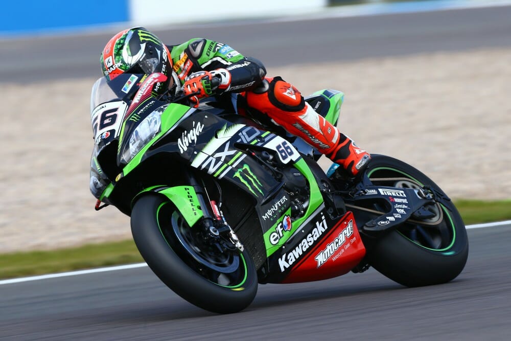 Tom Sykes (Kawasaki Racing Team) doubled up at his home venue of Donington Park by winning his second race of the weekend, making it his eighth straight victory at the 4.023km.