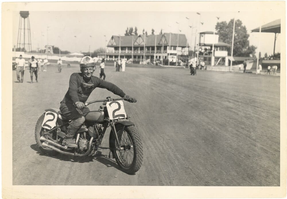 Johnny Spiegelhoff was a leading racer of the 1940s. The rider, from Milwaukee, Wisconsin, won the Daytona 200 in 1947 aboard a prewar Indian Sport Scout. Spiegelhoff also won the Langhorne 100 in 1946 and numerous regional and state championships during his 12-year racing career. Like many racers of his era, Spiegelhoff’s career was cut in half due to the four-year stop of national racing during World War II.