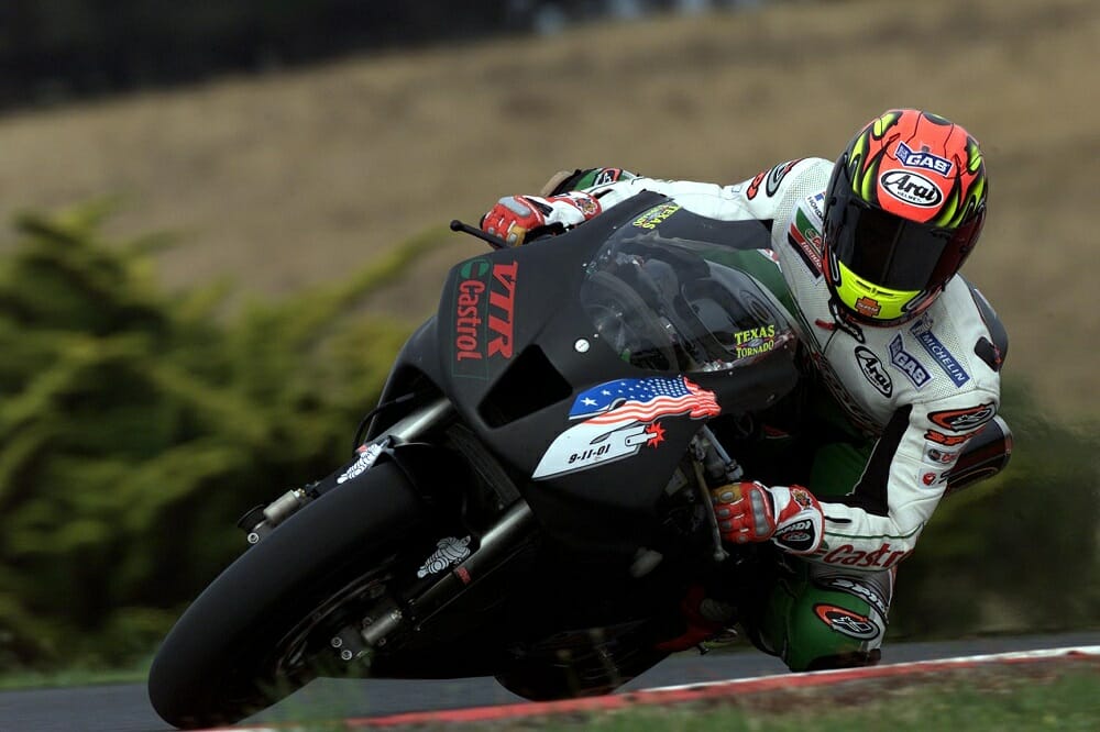 “I actually started way earlier,” Colin says. “At the end of 2001, I tested in Philip Island. I was (WorldSBK) champion in 2000 and I finished second that year in 2001. I had a number made and it was a big number 2 for 2002. Right at the bottom of the 2 it said 9-11-2001. That’s all I could really do to show support.