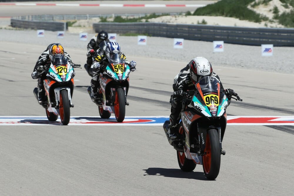 AXcess Racing’s Brandon Paasch made his MotoAmerica KTM RC Cup debut last year in Utah and made an instant name for himself with a podium finish. This year the youngster is leading the championship and he extended that lead on Friday with a victory in the first of two KTM races. Paasch beat Yates Racing’s Asthon Yates by just .300 of a second with Anthony Mazziotto III finishing third on his Jimmy Winters Motorsports RC 390.