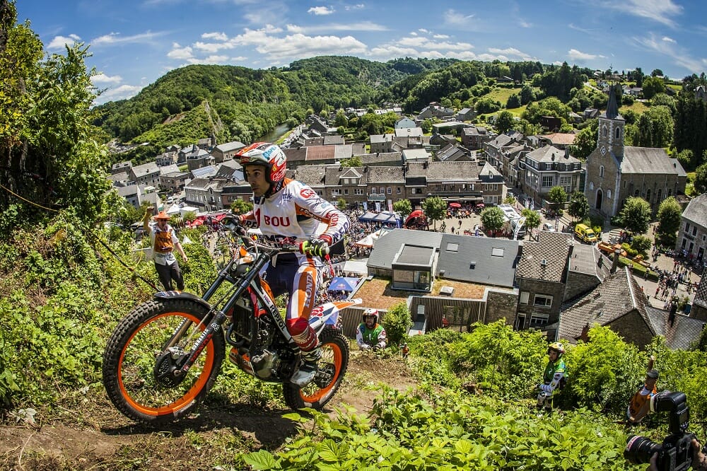 It was the tiny population of Belgium’s Comblain-au-Pont who hosted the sixth Grand Prix of the trial calendar – the eleventh of a total of fifteen trials given that the Belgium event featured only a single date. Toni Bou scooped his eighth win of the season in a trial a world away from the rain-soaked one disputed here two years ago. The lengthy course did, however, feature some very technical sections which forced some riders to make mistakes.