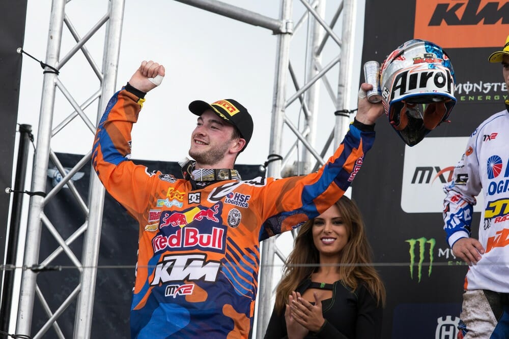MX2 Championship Top Ten: 1. Jeffrey Herlings (NED, KTM), 644 points; 2. Jeremy Seewer (SUI, SUZ), 568 p.; 3. Benoit Paturel (FRA, YAM), 460 p.; 4. Max Anstie (GBR, HUS), 447 p.; 5. Pauls Jonass (LAT, KTM), 403 p.; 6. Dylan Ferrandis (FRA, KAW), 378 p.; 7. Petar Petrov (BUL, KAW), 351 p.; 8. Brian Bogers (NED, KTM), 349 p.; 9. Samuele Bernardini (ITA, TM), 341 p.; 10. Aleksandr Tonkov (RUS, YAM), 320 p.