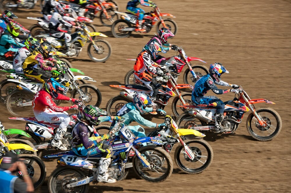 In early January, the Supercross series begins, and there isn’t a single weekend off until Easter. That’s 14 consecutive race weekends in the upcoming 2017 series. Any injuries incurred either put them on the sidelines, or they just effect their training and practicing during the week between races—which invariably has some effect on the races themselves, and often leads to more injuries. The series ends in May.