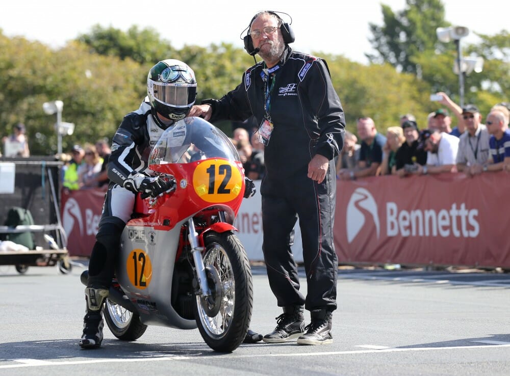 James Cowton, due to start 19, set off from the back of the field on the Dave Kennah Racing Norton following machine issues, made a huge effort to get to 6th place before retiring on his third lap at Signpost Corner.