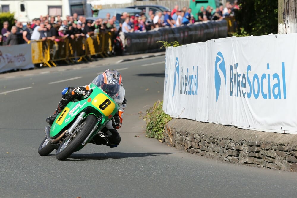 Meanwhile Rutter had moved up into fourth place by Ballaugh on his second lap ahead of fifth placed Oversby. However, it was clear that Rutter had machine issues as he came in to the pits and he duly retired at the end of the second lap.