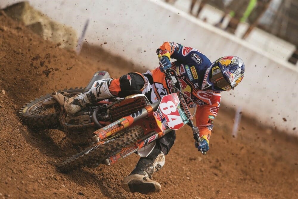 The races at the man-made track in Charlotte were difficult for several reasons for the European riders. Qualification was washed out completely on Friday and they only had a free practice and a timed practice to learn the circuit. Added to this, the races were on Saturday night under lights. For riders and teams struggling to adjust to a sixhour time difference, this meant opening motos were run at 23.00 and midnight, and the second motos at 02.00 and 03.10 hours Central European Time.