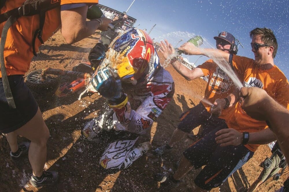 On his way to the title, Herlings won the first twelve rounds on his KTM 250 SXF, dropping only three possible points with a second place in the opening moto in Italy. He then sat out three rounds (Czech Republic, Belgium and Switzerland) to heal a broken collarbone. He bounced back at the next round at home in Assen for another GP win, and on the start of race one at Charlotte he knew he only had to finish in front of closest rival Jeremy Seewer to take the title.