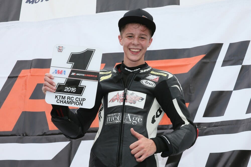 One of the three remaining titles up for grabs in the 2016 MotoAmerica AMA/FIM North American Road Race Series was clinched on a hot and balmy day at New Jersey Motorsports Park with Brandon Paasch taking the KTM RC Cup Championship in style by winning his sixth race of the season in the Yamaha Superbike Challenge of New Jersey.
