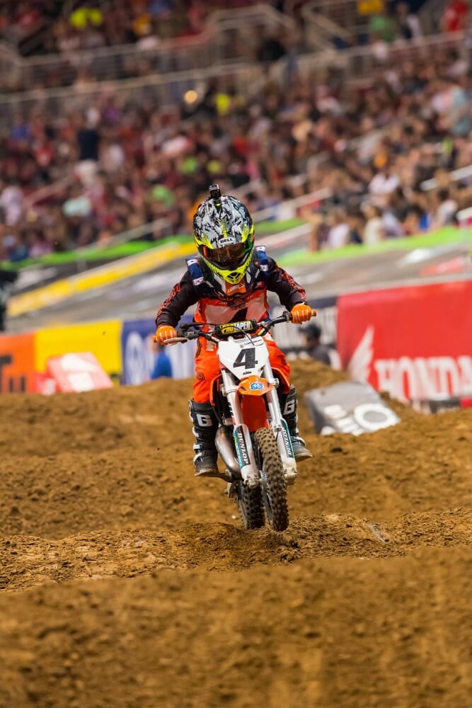 The KJSC is an intermission program where 15 randomly selected riders race aboard identically prepared KTM 50 SX motorcycles. Throughout the day, the young riders will experience a track walk like the pros, participate in two practice sessions, sign autographs for the fans, participate in opening ceremonies and race a three-lap exhibition race during the Supercross night program.