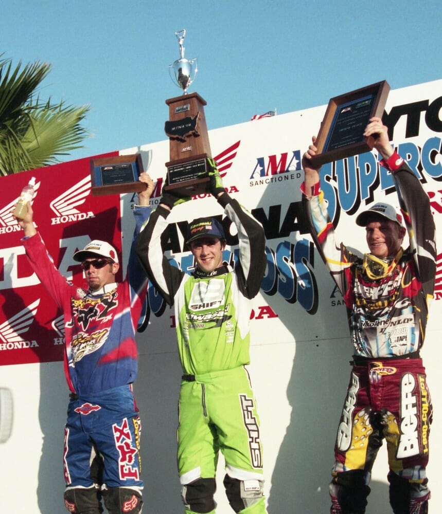 The season will also be remembered for the sudden rise of four-stroke bikes. Lance Smail put a KTM four-stroke in the field at the Daytona Supercross. Interestingly, while fans today look back longingly at the two-stroke era, the announcers and fans closely followed Smail’s progress on the 550cc KTM thumper and were thrilled when he made the field for the final. It’s thought to be the first time a four-stroke qualified for a Supercross main event. Smail’s performance was a precursor. The season ended with an important milestone; the first Supercross win for a four-stroke motorcycle. Doug Henry rode a Yamaha prototype to victory in the series finale, a predecessor of the shape that Supercross and motocross racing would take in years to come.