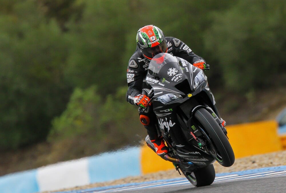 Jonathan Rea (Kawasaki Racing Team – WorldSBK) ended what is likely to be the final dry day of track action at Jerez in Spain with the best time of all thanks to a 1:38.721 on his Ninja ZX-10RR. He used a qualifying rear tire to go that fast but he still set a 1:39.5 on a race tire, as he once again went head-to-head with some of the top MotoGP runners.