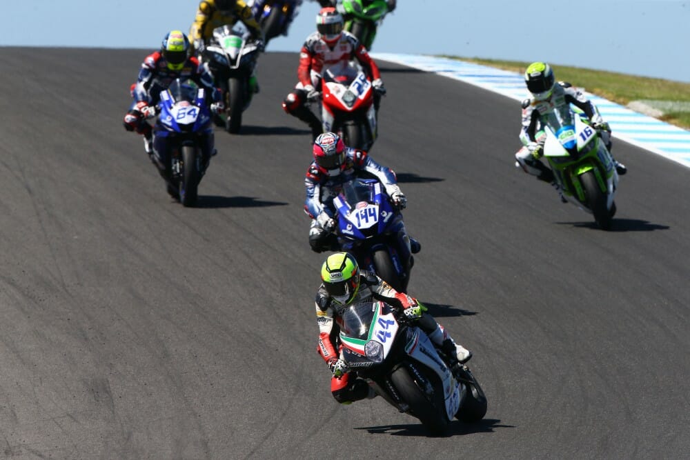 An unbelievable 10-lap WorldSSP race, which saw the expected order change lap by lap, finished in controversial style at Phillip Island. It came down to a fight between eventual winner Roberto Rolfo (Team Factory Vamag MV Agusta) and second place Lucas Mahias (GRT Yamaha Official WorldSSP Team) and it was a literal fight across the line that eventually saw Rolfo run off track – after winning by photo finish and 0.001 seconds – as Mahias and he contacted across the line.
