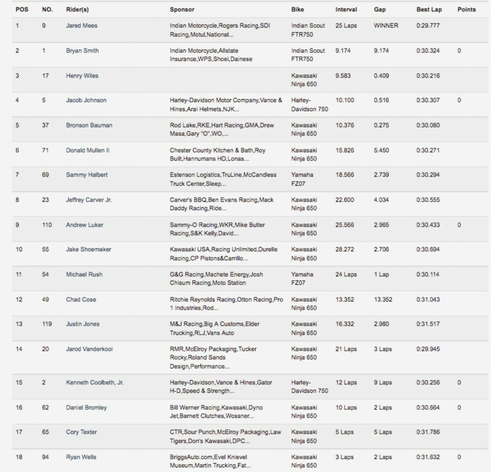 2017 Daytona TT American Flat Track Results