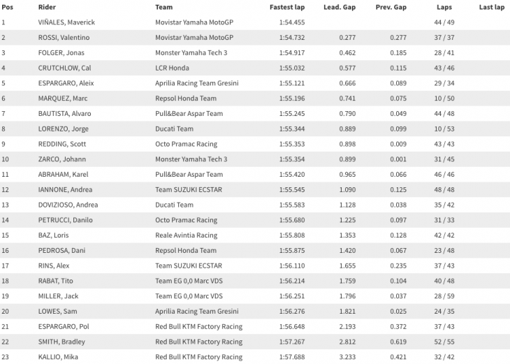 Jonas Folger kept his crown as top rookie, putting in another stunner to complete the top three on his Monster Yamaha Tech 3 machine. Folger was the only rider able to join the Movistar Yamahas in the 1:54 bracket, putting in an incredible 1:54.917.