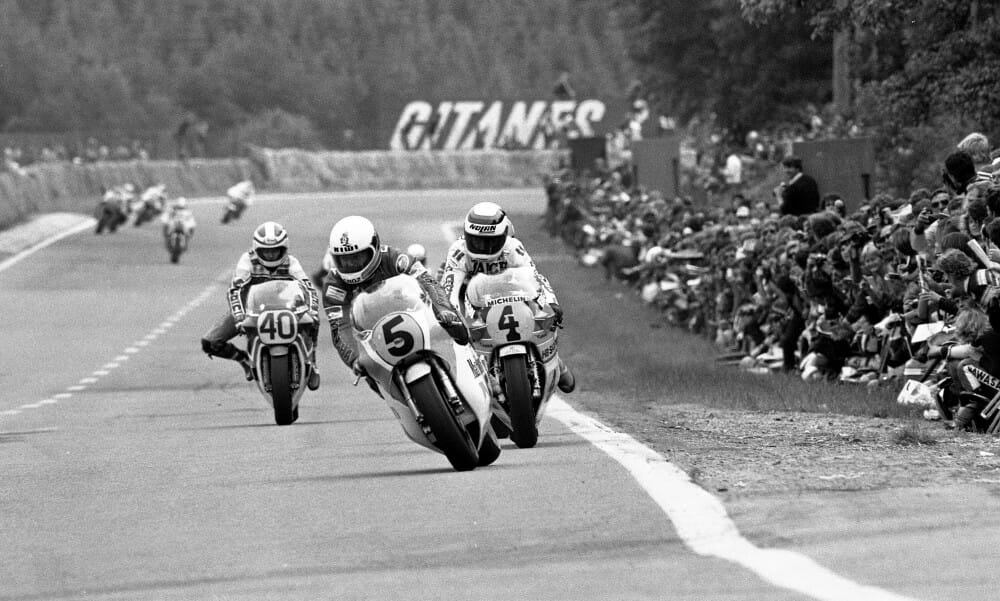 The ridiculous rule and resulting penalty forced them to start from the back of the field. It infuriated Crosby. He used that fury to absolutely mow through the field en route to battling Honda’s Freddie Spencer late before taking the surprising victory. By then Crosby had already been competing in British events and large contingent of British fans who were on hand for Daytona went nuts when their man took victory.