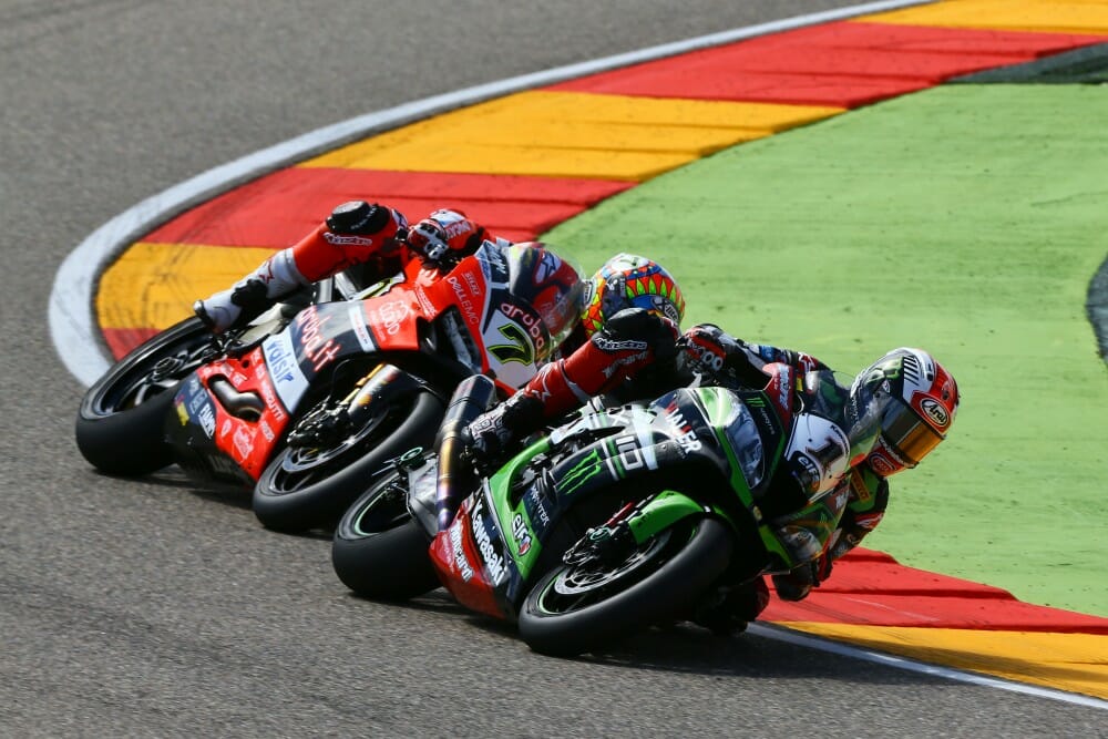 Chaz Davies (Aruba.it Racing – Ducati) and Jonathan Rea (Kawasaki Racing Team) battled it out for supremacy in race one at Motorland Aragon, until Davies crashed out on the entrance to the final corner of the penultimate lap. Rea therefore won his fifth race in succession.