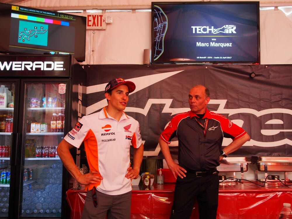 In a special presentation at the Alpinestars hospitality event at Circuit of The Americas on Friday for the 2017 Red Bull Grand Prix of The Americas, three-time MotoGP World Champion Marc Marquez made an appearance to have a quick chat with the assembled media about the latest innovation in rider safety, the Alpinestars Tech Air Race airbag system.