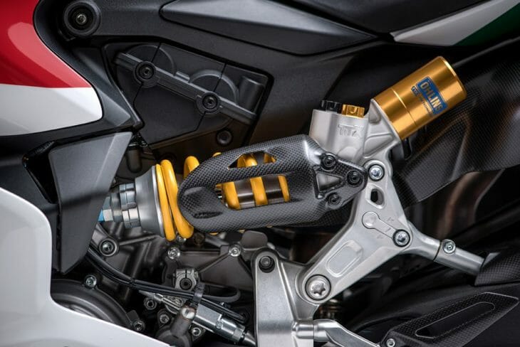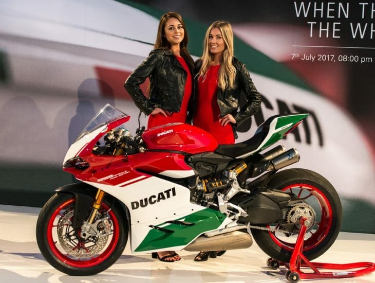 WorldSBK riders Chaz Davies and Marco Melandri presented the Final Edition machines that have been developed off the recently released Superleggera, with a claimed 209hp on tap from the Superquadro motor. The Final Edition sports the usual Ohlins and Bosch IMU goodies, as well as an Akrapovic titanium exhaust.