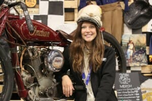 Antique motorcycle racer Brittney Olsen served as ambassador, sharing her passion for educating current and future motorcyclists about the early era of American motorcycle racing, while also putting some of her own vintage race bikes on display.