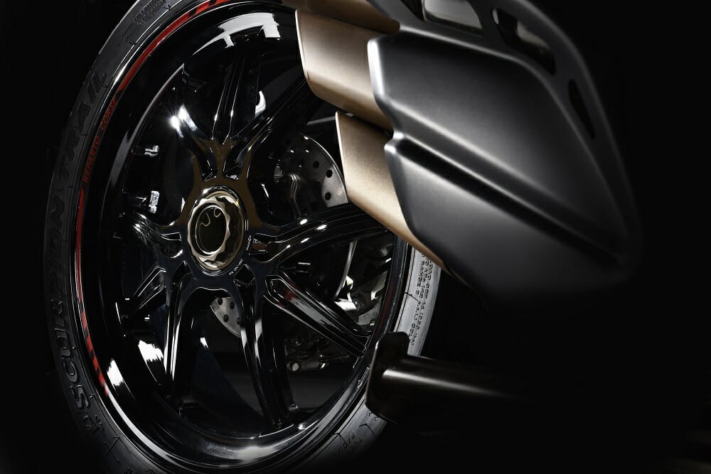 The construction of this top of the range motorcycle is further enriched by virtue of the RC version, which will be produced in a limited edition of 250 pieces. Recognizable primarily for specific racing livery, characteristically aligned to the other precious RC models. The evolution of the Turismo Veloce encompasses both functional and cosmetic features: the latter of which is accentuated with a carbon-fiber deflector on the front mudguard. The forged wheels feature a design that accentuates lightness and a racing pedigree derived from the variant used on the F4RC.