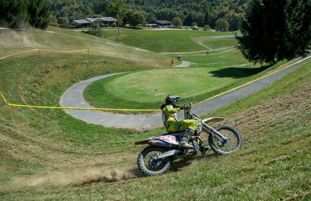 Everybody that rides dirt bikes has probably dreamed of tearing up a golf course. Round seven of the 2017 Kenda Full Gas Sprint Enduro series provided that rare opportunity. The race took place at the Hidden Valley Golf Course in Glen Daniel, West Virginia and Ryan Sipes rode his Coastal Racing Husqvarna to the win.