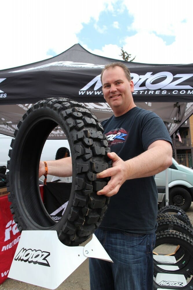 Brian Cornelius: Man, we have so much new stuff these riders are in to this weekend! Adventure riders are really excited about our new range of adventure tires from Motoz. Motoz is an Australian company with a factory in Thailand and the Adventure market is relatively new for us, but we’re established off-road. We’ve only been in the Adventure market for two years. Already, we’ve introduced some really popular tire options for these riders.