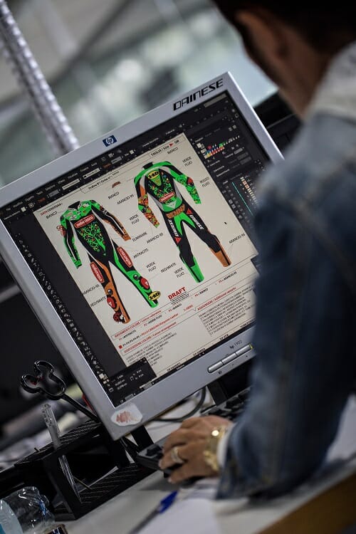 Different levels of customization are available, starting from basics with standard color choices, up to a complete customization package of color options, measurements and the inclusion of logos and other add ons. Once complete, the measurements and customization specs are sent to Dainese’s production facility, where each piece is hand-sewn by professionals, many of whom do custom sewing for Valentino Rossi suits.