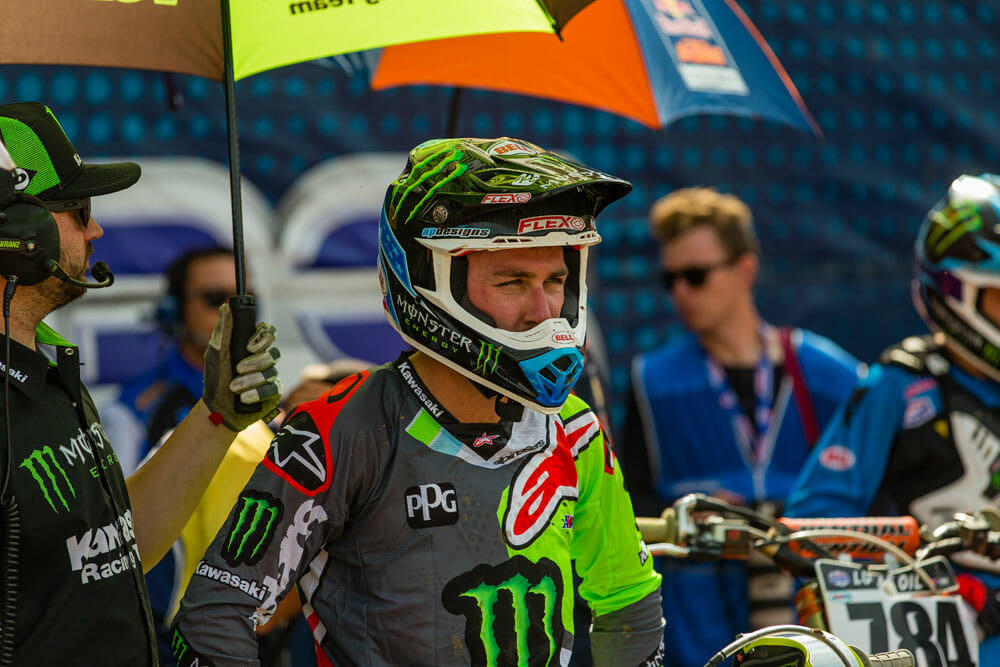 The Monster Energy Kawasaki race team is, for all intents and purposes, built around you. To that end, it takes a crew of upwards of 17 people to get you and the works KX450F out on that track and running competitively. There is a lot of pressure that goes along with all that. The crew of people around you and the bike reminds more of a MotoGP team now than a motocross team.