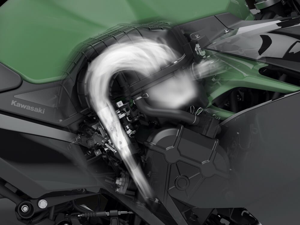 Under the skin of the 400 sits a new 399cc parallel-twin four-stroke that sports a downdraft intake system, with airbox volume, increased to 5.8L and a new 32mm throttle body. Kawasaki claims the new intake system allows the injectors to be positioned closer to the throttle valves, enabling them to spray fuel directly onto the valves, which increases combustion efficiency and results in a linear throttle response. Further inside the motor sit new flat top pistons, an increased compression of 11.5:1 and some trick forged camshafts.