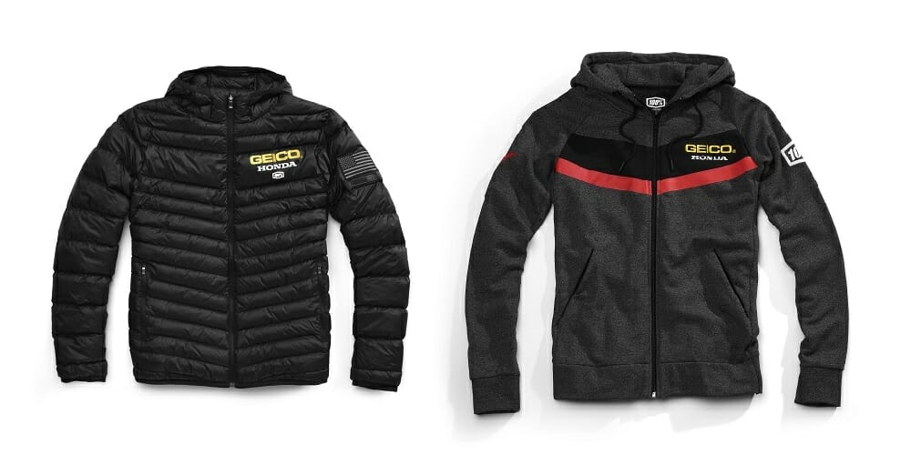 The partnership that began with 100% being the exclusive goggle for the team since 2014 grew last season when 100% became the official team wear of GEICO Honda. Through this came a complete range of jackets, sweatshirts, t-shirts, headwear and collectibles.