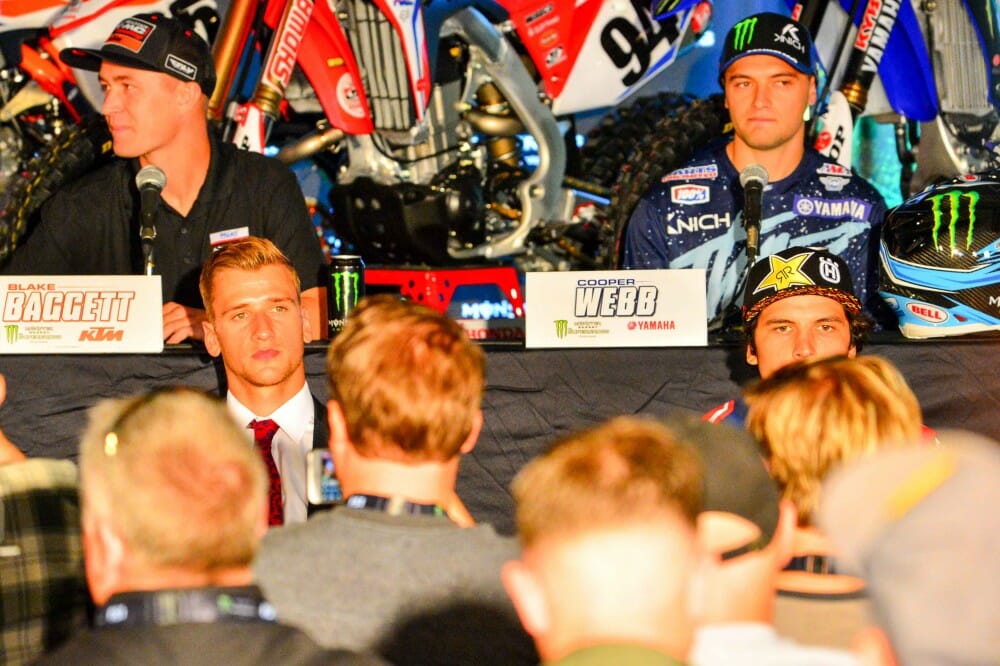 The room was jammed packed with media and industry people; the racers who were invited to attend included Ken Roczen, Eli Tomac, Jason Anderson, Blake Baggett, Cooper Webb, Marvin Musquin, Westin Peick and Chad Reed. This year’s conference did not have a defending champion on stage now that Ryan Dungey is retired, which he made official right after the 2017 supercross season. Of the group, Reed is the only past supercross champion.