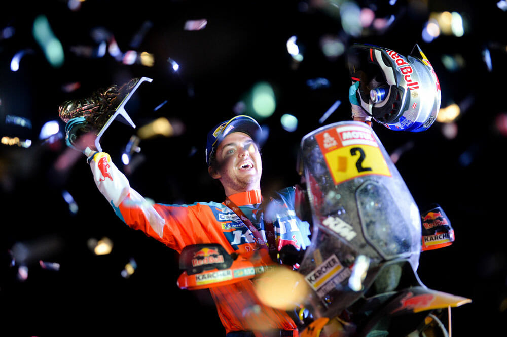 - Matthias Walkner celebrates his first-ever Dakar victory. It marked the 17th consecutive victory for KTM, but the first time an Austrian won on the Austrian brand.