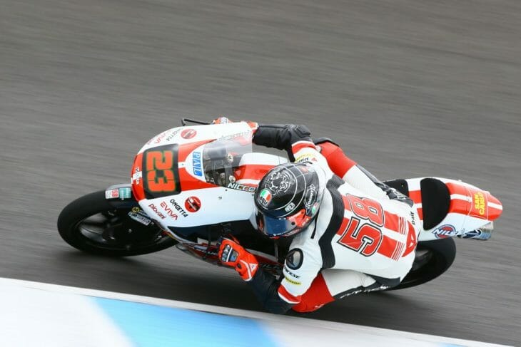 Alongside him, class rookie Romano Fenati (Kalex), and former Moto3 champion Danny Kent, riding a Speed Up. Fenati’s victor in last year’s Moto3 championship, runaway winner Joan Mir, ended up down in 24th.