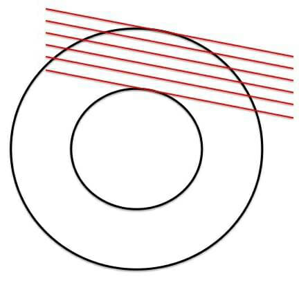 In this illustration, we can see the layers layout for a radial carcass. They start from the center and go through the exterior circumference (radius).