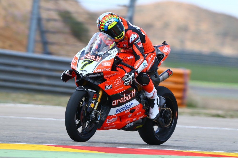 2018 Aragon WorldSBK and WorldSSP Sunday Results—Chaz Davies (Aruba.it Racing – Ducati) won the second WorldSBK race at Motorland Aragon, with a last corner battle only averted after potential winner Jonathan Rea (Kawasaki Racing Team) ran off track pushing Davies’ lead, shortly after another potential victor Marco Melandri (Aruba.it Racing – Ducati) had dropped from a fraction of a second behind to over three seconds back, after losing his back brake and easing up.