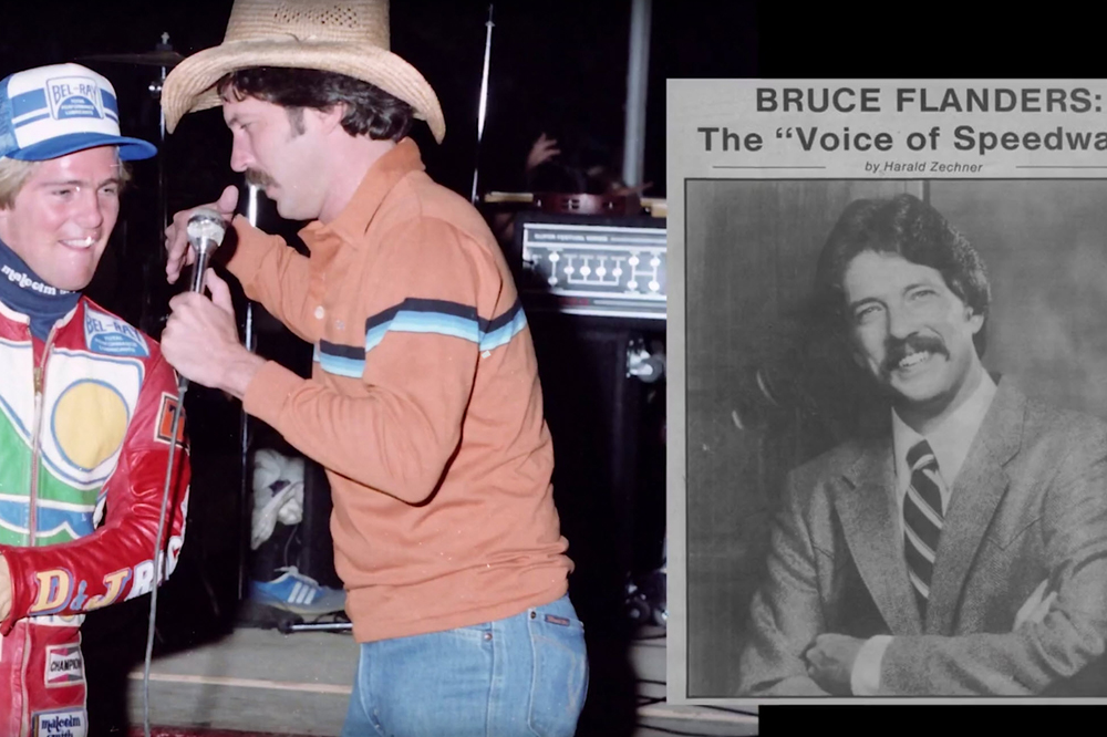 Bruce Flanders is a legendary motorsports announcer who has announced all forms of motorsports beginning with his favorite speedway motorcycles. He has announced for AMA, Nascar, IMSA, NHRA, CART, IRL and many others.