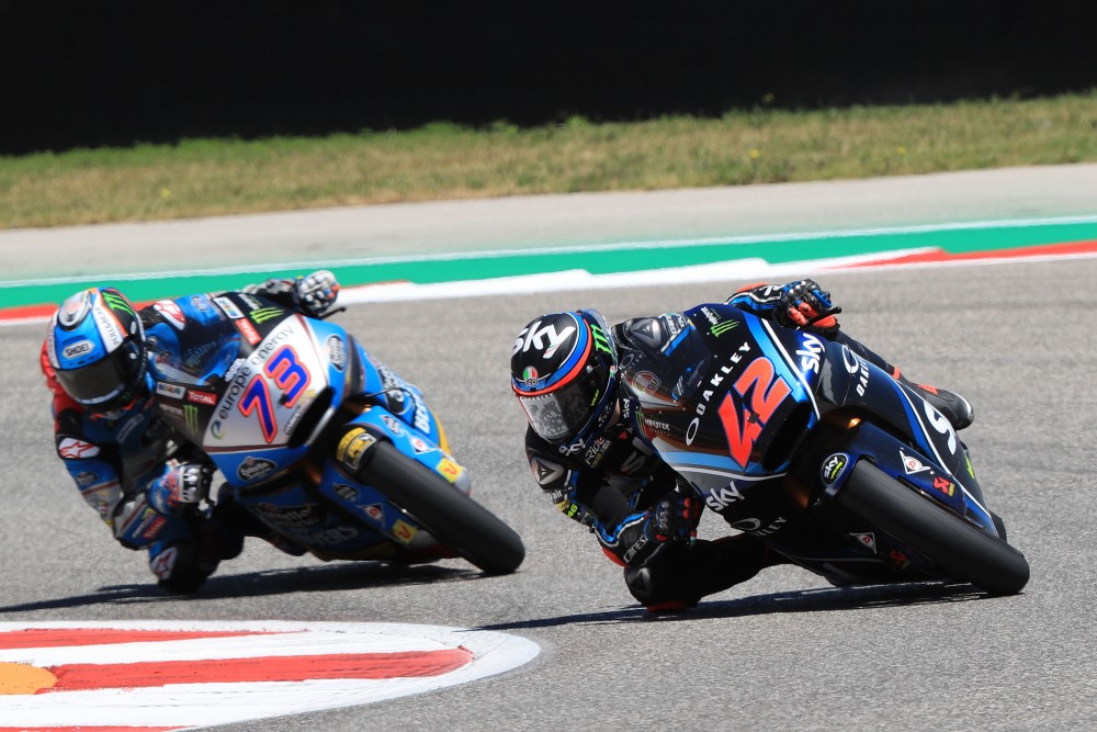 Italian Rossi protégé Pecco Bagnaia (SKY VR46 Kalex) powered to a second win in three races at Austin, coming from row two of the grid to close down pole starter Alex Marquez (EG-VDS Kalex).