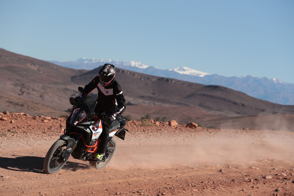 Rear traction was very good off-road but it was on the tar where the grip and stability was obviously at its best, and I could get seriously aggressive with the throttle on the big KTM with all the rider aids turned off and the rear tire would still hook up and lurch me forward. It’s here the designation as a more street-focused tire begins to shine through, as high-speed stability was excellent for when we decided to wind the bikes out and test the outer limits of the Moroccan speed zones.