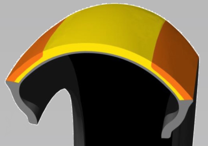 The Adventure A41 is constructed using Bridgestone’s MSB (Monospiral Belt Construction), with a stiffer case construction to aid in the high-speed stability desired by the engineers. The rear compound (and most of the fronts, save for 21-inch tires, for example) uses a Cap and Base design. That allows for the harder center compound to be run underneath the softer side compounds, thus giving the carcass extra stiffness, more rigidity and better stability when braking and cornering. This allows the softer compound to flex, bend and grip to the road and trail conditions, resulting in a five-percent-larger contact patch.