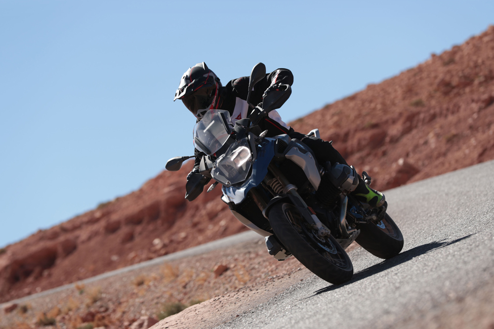 Just like on the dirt, front-braking stability was excellent on the tar—although this time it was extra impressive given how hard I would slam on the front-brake lever on the GS when leaned over.