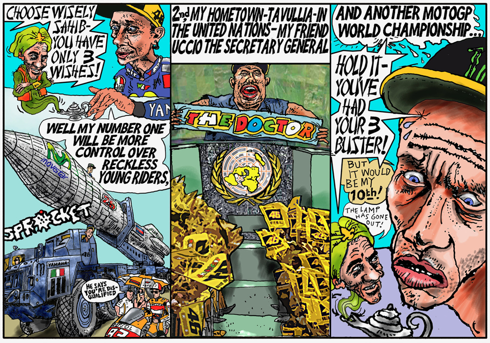 So let’s begin by expressing the opposite: I have vast reserves of respect for Valentino—for his talent, his race-craft, his intelligence, and his breadth of vision—nowadays best seen in how he is training up the next generation of Italian stars at his ranch: a program that not only teaches them about riding but also how to speak English and how to negotiate contracts and fees.