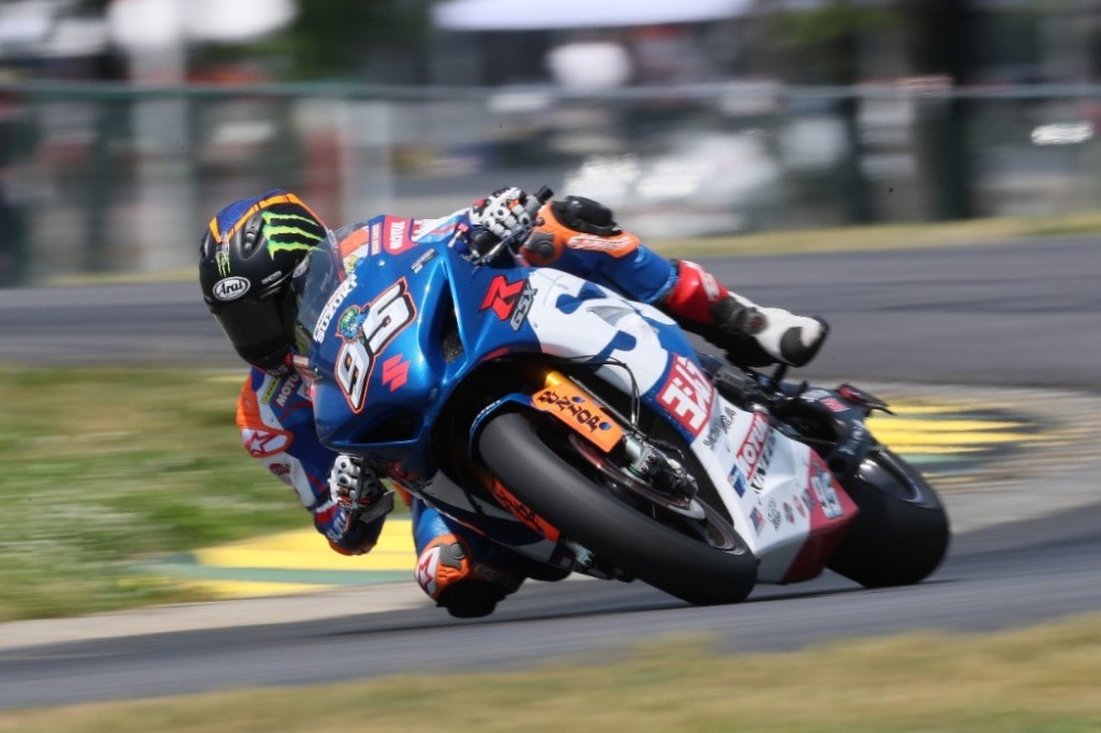 Yoshimura Suzuki teammate Roger Hayden had a tough-luck weekend. He got caught up in a chain-reaction crash in Saturday’s race ending in a spectacular endo at speed. Hayden attempted to race Sunday. He ran as high as fourth in the early going, but began experiencing dizziness and decided the best action was to pull out of the race.