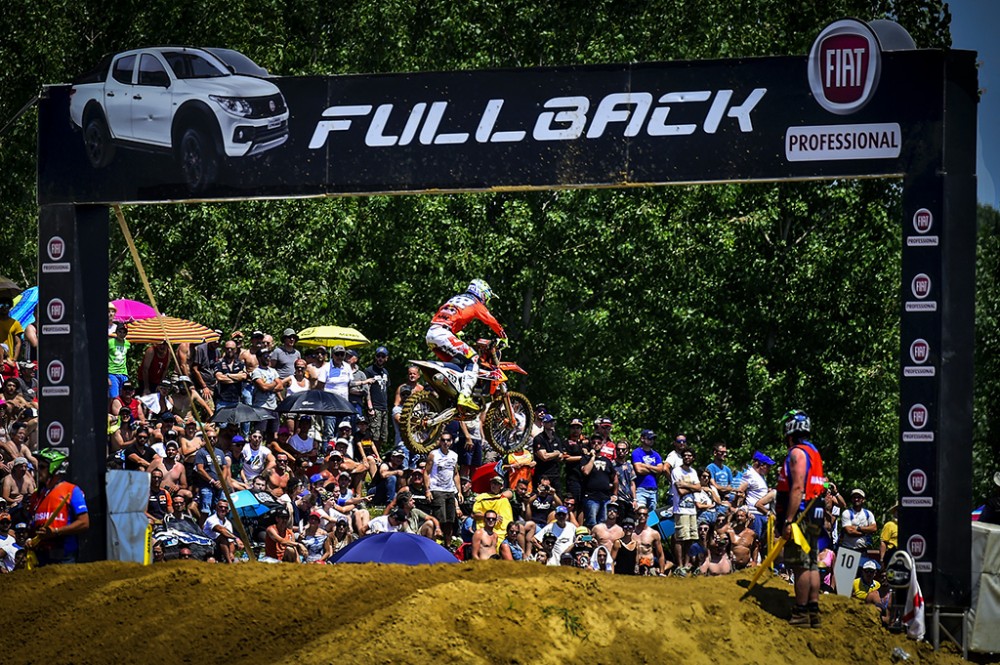 In the second moto, it was Standing Construct KTM’s Kevin Strijbos who got the holeshot over Desalle, but Cairoli went by them both in the first few turns to take the lead. While it looked as if Cairoli would run away again, he made a costly error and fell on the second lap, remounting fourth. He went back to work, then passed one rider per lap until retaking the lead from Honda’s Tim Gajser on lap five, then held that lead to the finish.