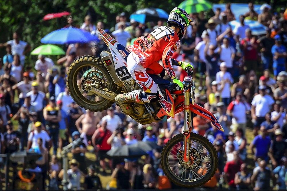 2018 MX GP of Lombardia Results: Just as the 2018 MX GP World Championship was looking like it was essentially over, with Red Bull KTM’s Jeffrey Herlings dominating moto after moto, and event after event, leading to a 62-point lead over rival and KTM teammate Antonio Cairoli, news hit that Herlings went down while practicing and broke his collarbone a few days before the MX GP of Lombardia.